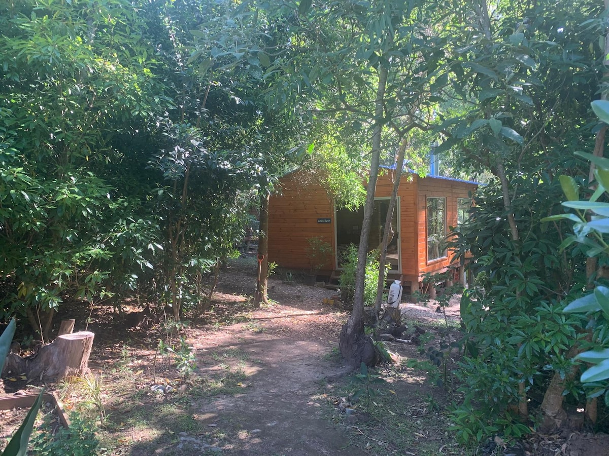 Relájate en este espacio tranquilo, elegante y ecológico En un predio de 3500 m2 con su huerta ecológica y principios de permacultura. Cabaña monoambiente totalmente equipada para disfrutar a full. A pocas cuadras del centro de la barra podes estar con la tranquilidad del campo. Van con sábanas, toallas y elementos de aseo y limpieza Además parrillero y horno de barro de uso común para los más gastronómicos