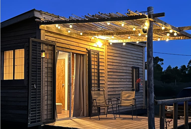 Cabaña de madera, ideal para 2 personas, situada sobre la ruta 60 en el departamento de Maldonado. Posee una cama doble, ropa de cama, agua caliente, vajilla, frigobar y microondas. Los huéspedes disponen de los lugares comunes y el parrillero. La estadía incluye desayuno y también ofrecemos el menú del día, comida 100 % casera! tanto para el almuerzo como la cena.