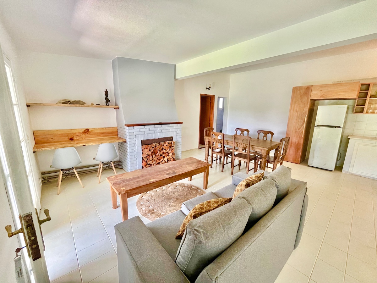 Relájate en este espacio tan tranquilo como elegante. Casa amplia y luminosa en barrio privado, a 4 cuadras del mar, rodeada de campo y sierras. Ideal para familias o grupos de hasta 8 personas. Cuenta con Tv, WiFi, estufa a leña, piscina climatizada (de octubre a abril), juegos para niños y paseos a caballo. Todo lo necesario para descansar, reconectar y disfrutar de la naturaleza sin resignar confort.