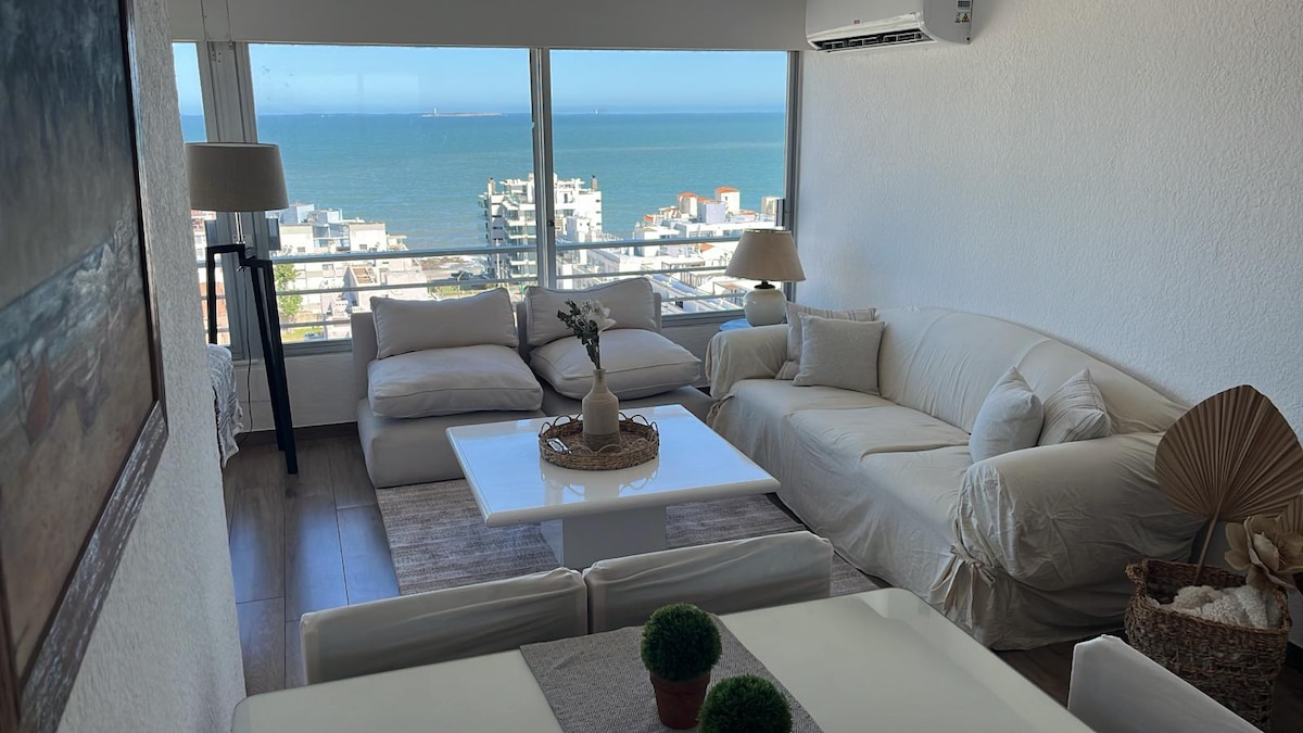 Apartamento de un dormitorio a metros de Playa Mansa y frente al Hotel Enjoy. Muy luminoso, con linda vista a la Playa mansa y todas las comodidades. Wifi , TV Cable, Servicio de mucama diario. Garage propio y lavadero. Muy lindo decorado y completamente equipado. TVs y aire acondicionado en los 2 ambientes. El edificio tiene seguridad 24 hs y cuenta con amenities de calidad: piscina exterior climatizada, gimnasio, sauna, barbacoa con amplia terraza con vistas a la Bahia. Próximo a Gorlero