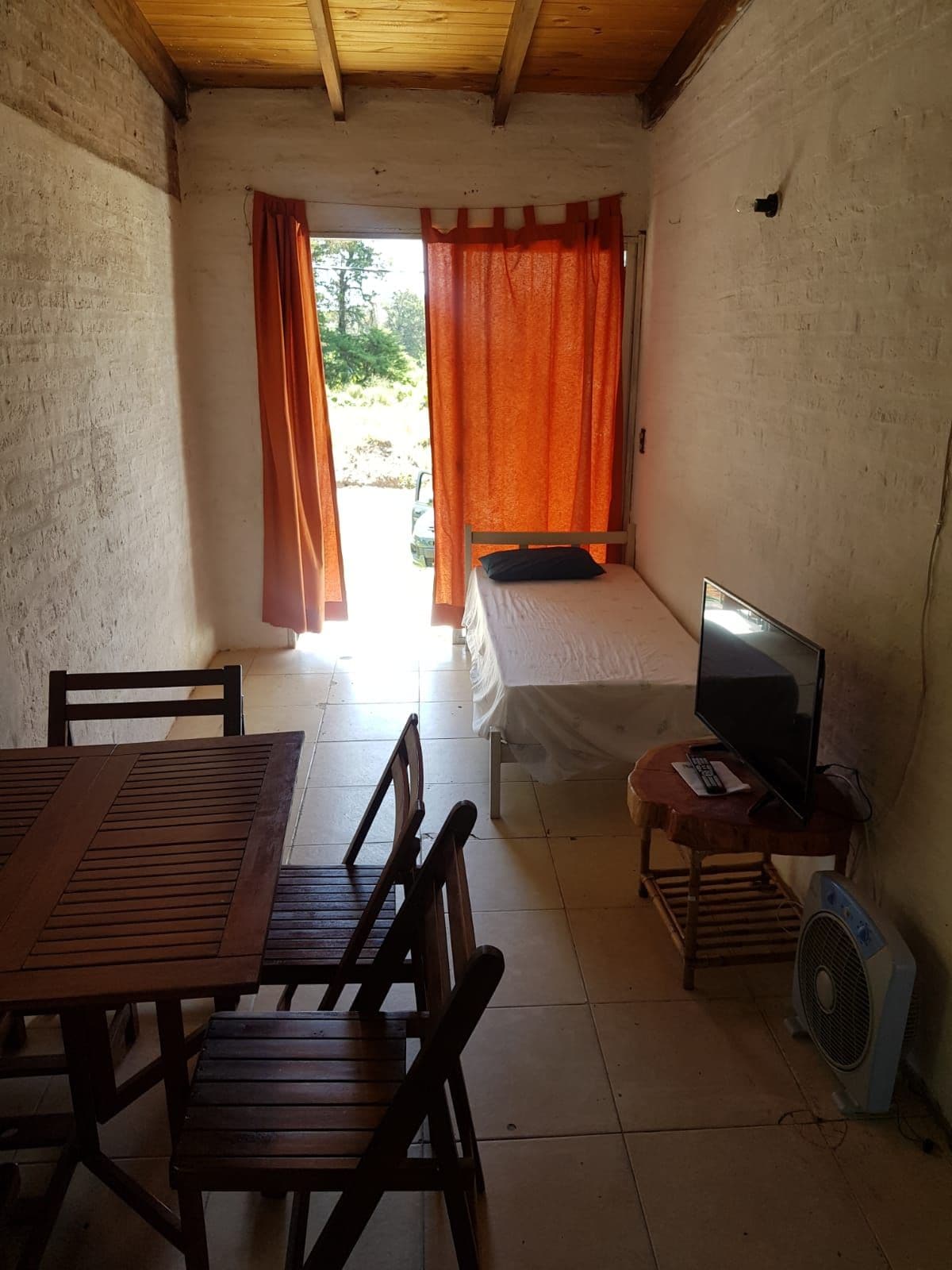 Zona arbolada, con buena sombra, predio cercado. A 8 cuadras de la playa. Lugar tranquilo, comercio de suministros varios a una cuadra y media. Turbo ventilador, microondas, tostadora, mixer, cocina a gas, heladera. Construcción de material. Espacio para guardar vehículo dentro del predio.
