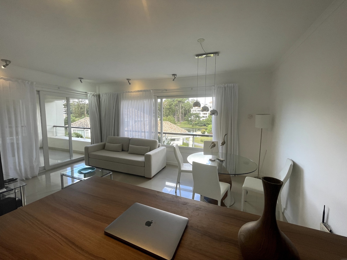 Precioso apartamento con vistas al mar a 120 metros de la playa, 1 dormitorio, living, baño, cocina y balcon, totalmente equipado y super comodo. El edificio cuenta con piscina climatizada interior con un jacuzzi , gimnasio, recepcion, dos piscinas exteriores y parrillero , un parrillero en la terraza con vista a la playa Mansa y la Brava y tambien parking. En una zona llena de restaurantes, mercados y mas. 😊
