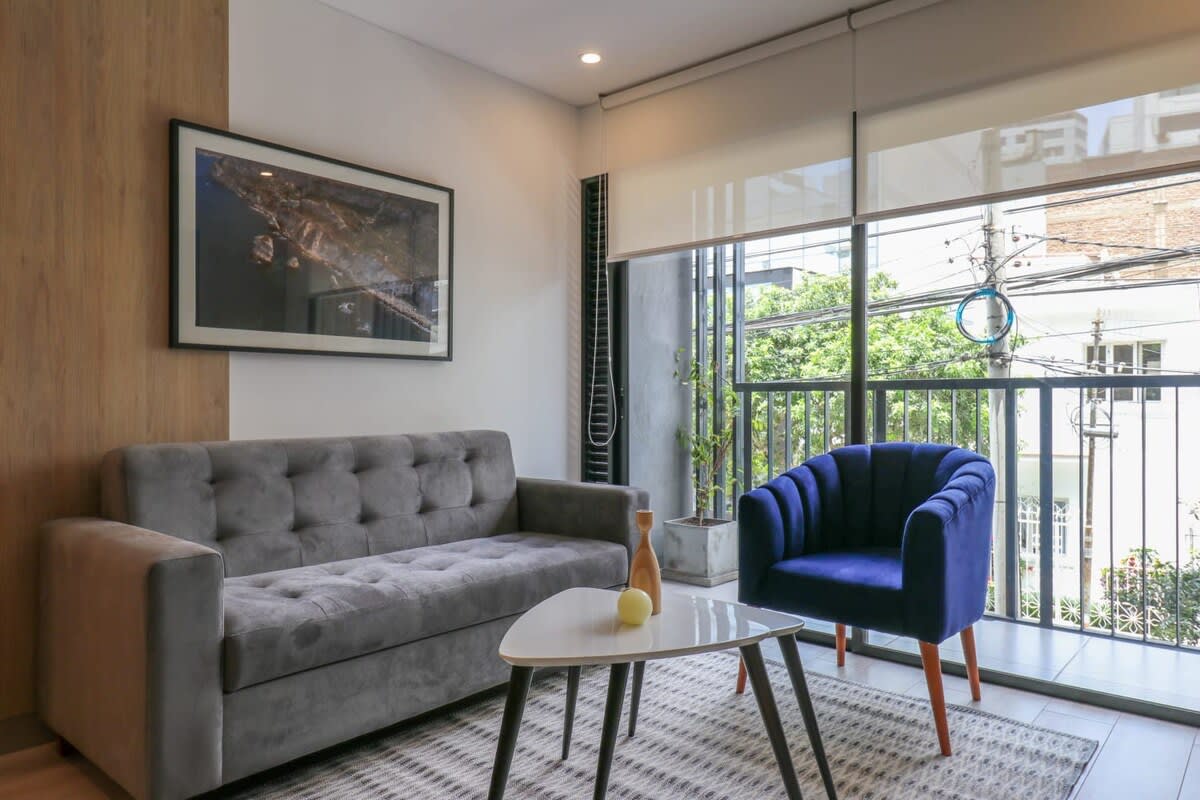 Remodeled Apartment! Located in Barranco, the most important central, cultural, romantic, and bohemian district of Lima; walkable surroundings. • Tourism & Business • 7th floor, safe and family-friendly condominium • Balcony • Spanish shower • Fully equipped kitchen • Washer+Dryer inside • Air conditioning • Concierge/Security 24h • 5min to Malecón/Miraflores • 10min to Business District • 20min to Historic Center • Close to bus, shops, restaurants, and entertainment
