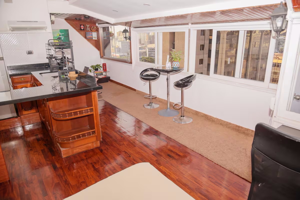 If you’re looking for a safe and exclusive place with a Smart TV and a terrace offering a beautiful city view, Mirania Loft is your best choice! We offer a stylish, modern space with great natural light and a comfortable terrace, located in a central area in the heart of Barranco — the perfect spot to enjoy the best experience during your stay in Lima. The loft is designed for couples, ensuring peace, comfort, and a relaxing atmosphere.