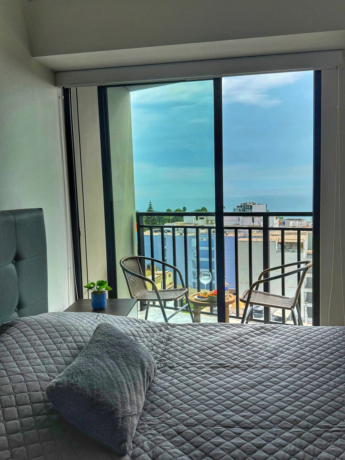 Super well located in MIraflores. Ideal for long stays and working nomads. Beautiful and quiet neighborhood. 1 block from boardwalk and best foodie street in Lima. Cozy, warm, modern, comfortable and very bright. Excellent Wifi! Fully equipped kitchen. Exterior sights and ocean view. Concierge 24hrs. A step away from bars, restaurants, malls, markets, cinemas, galleries and theaters. Beautiful parks with sea sights and outdoor activities. Walking distance from the coolest spots of Miraflores.