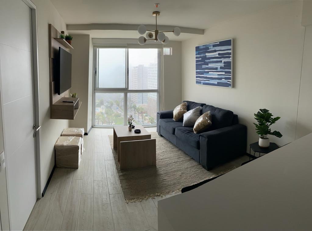 Te ofrecemos un departamento de estreno en la zona más exclusiva de Barranco. A pasos de las mejores playas donde podrás pasar unos días de esparcimiento. Disfruta de tu estancia aquí en un departamento de edificio moderno, luminoso y ganador de premios por la (NAHB).