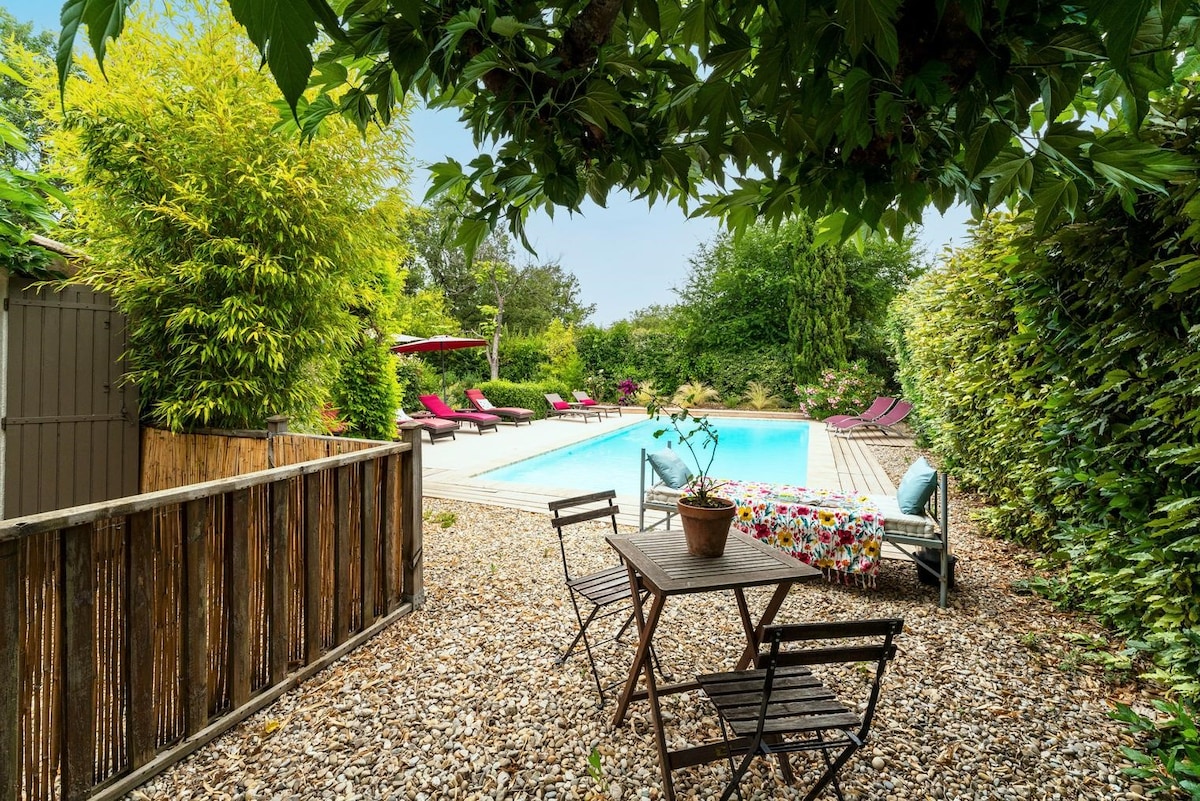 Welcome to our private oasis for 1 or 2 people in the heart of la roquette! Enjoy the heated salt water pool surrounded by tropical plants. The space will offer you a haven of shade and tranquility. Have breakfast, an aperitif, or cook poolside in the outdoor patio kitchen. The bedroom is air conditioned and equipped with luxury hotel quality bedding and organic linens, to ensure that your stay is relaxing and memorable.