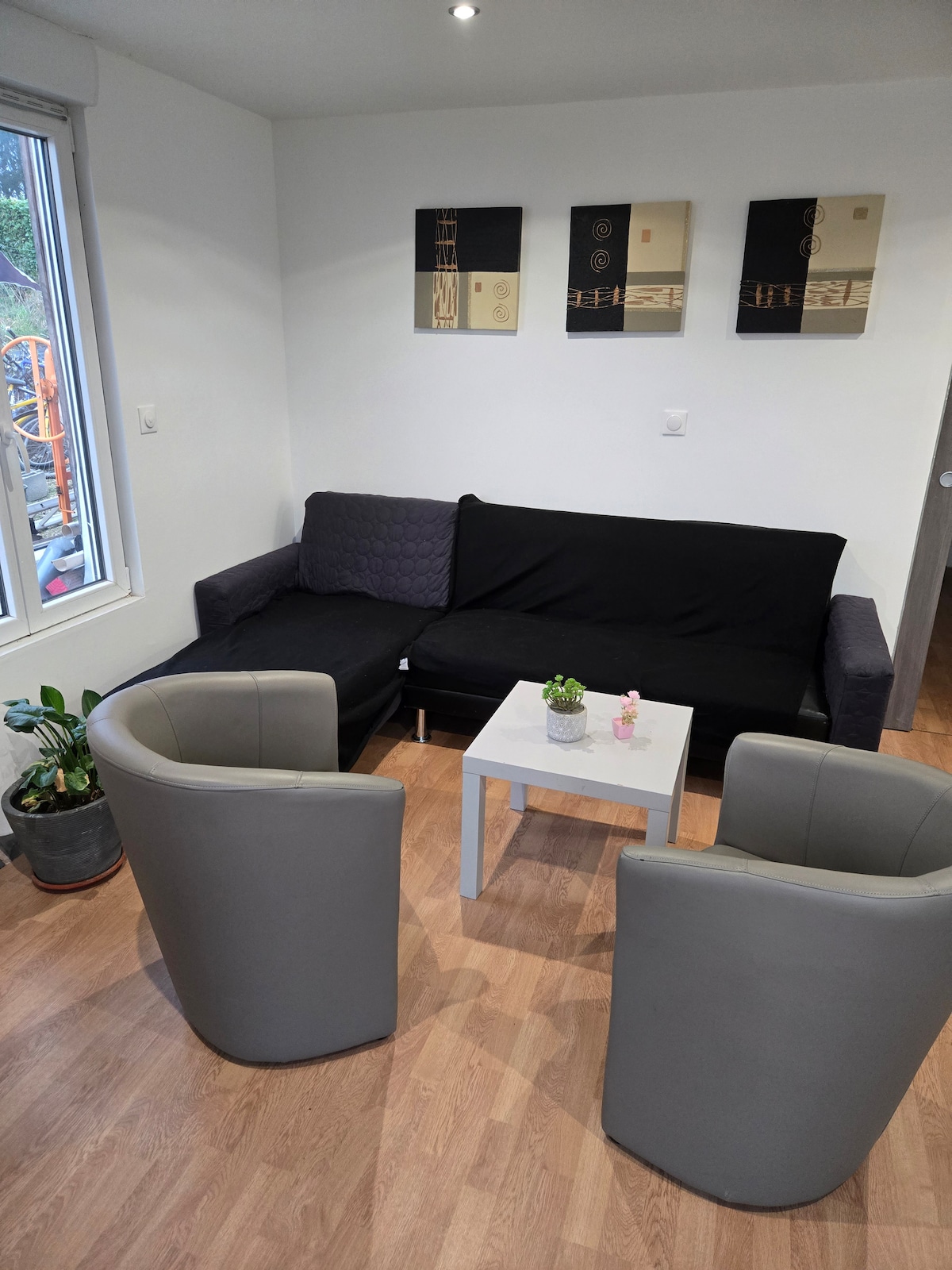 Paisible et bien placé. Au rez de chaussée d'une maison individuelle(nous habitons au dessus, pas de soirée possible), une rue calme , logement entièrement indépendant, à 10mn à pied du centre ville, 15mn à pieds de la gare SNCF. 2 boulangeries, Boucherie, Tabac Presse, Pharmacie et Supermarché à 2 mn à pieds. Restauré récemment, stationnement juste devant la maison, entrée indépendante, terrasse avec table et chaises. (Smart TV, C+, C+ sport, Tassimo). MENAGE SYSTEMATIQUE AVANT ARRIVEE !!