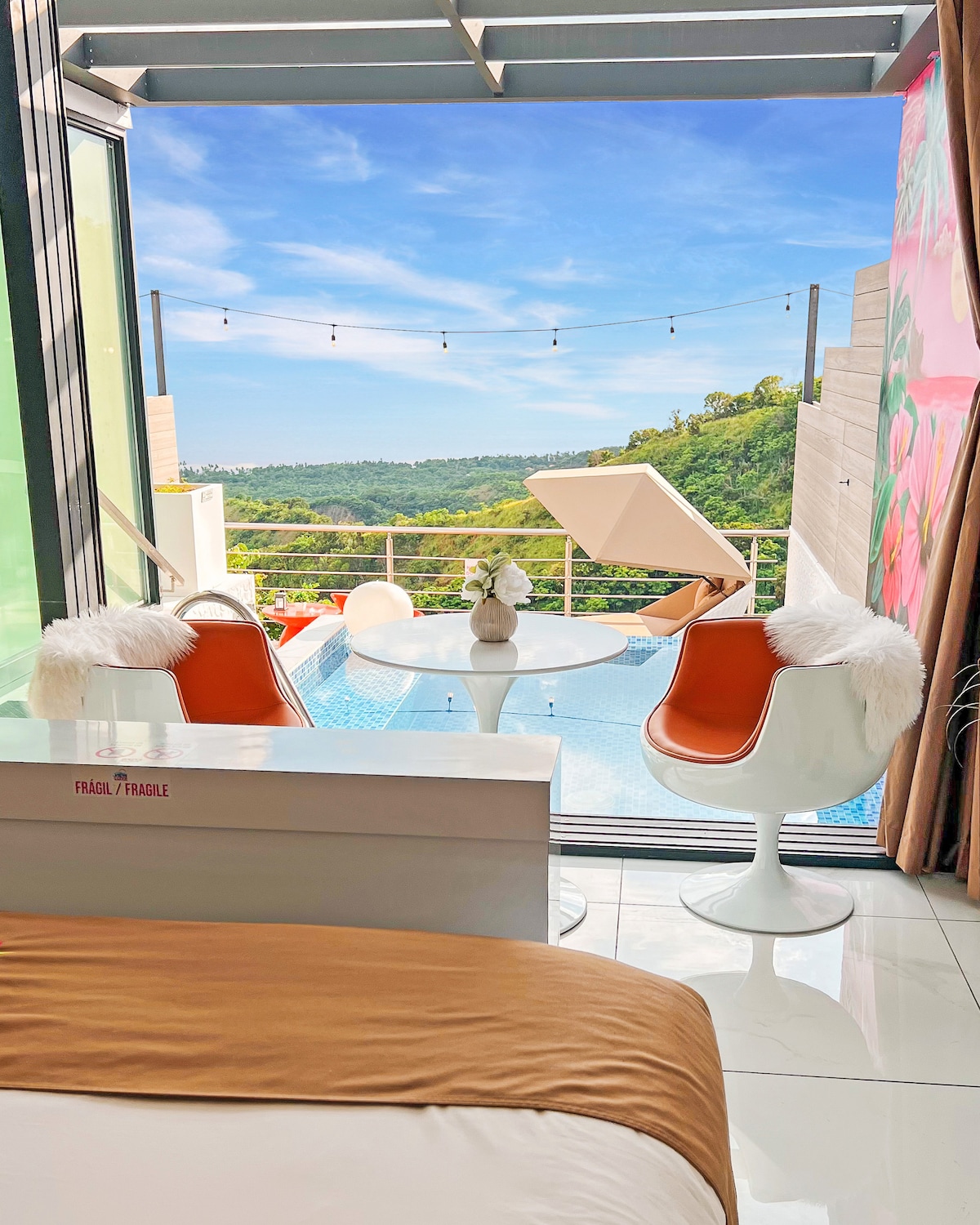 Suite apartment filled with the beauty and vitality of nature. It's a space to rest and feel peace and tranquility. This suite features: personal private pool, spacious bathroom with indoor garden, balcony, terrace, king bed, modern decoration, living room, air conditioning, 70” Smart TV, kitchenette and dining area. Private parking. It's located within a 5 to 10-minute drive from the most beautiful beaches, restaurants, supermarkets, (BQN) airport and the most popular attractions.