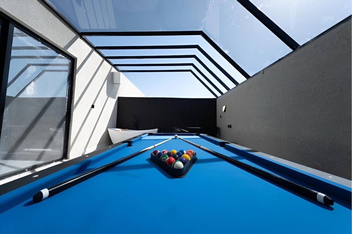 شقة فاخرة في حي حطين بجوار بوليفارد موسم الرياض في مبنى هومتيل ريزدنس بمدخل ذاتي ذكي تتكون من: - مسبح خاص مطل على KAFD و البوليفارد - بلياردو - جلسة خارجية - منطقة معيشة بها شاشة تلفزيون ذكي وصالة طعام ومطبخ وحمام للضيوف - مطبخ متكامل (فرن / ثلاجة / ميكروويف / ماكينة صنع القهوة / غلاية / غسالة ملابس اتوماتيك / أدوات المطبخ) - غرفة ماستر بحمام مستقل - غرفتين نوم تحتوي على سريرين مفرد وبينهم حمام مشترك -ملاحظة : يقع بوليفارد مدينة الرياض على بعد 5 دقائق فقط سيراً على الأقدام.