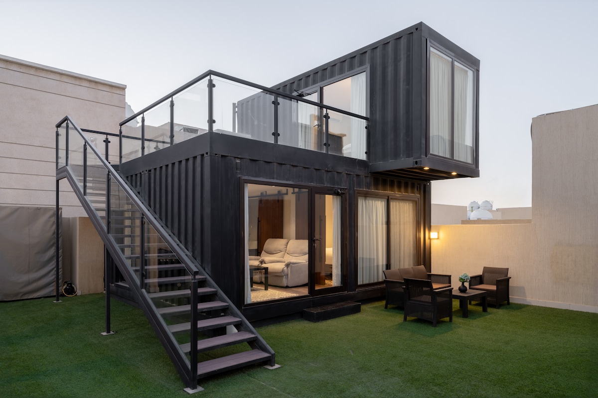 Two bedroom penthouse Private swimming pool Spacious living room Spacious kitchen With full amenities High speed, Internet Modern design Very close to the airport and Park Avenue mall بنت هاوس بغرفتين مسبح خاص شقة كبيرة مطبخ متكامل انترنت سريع تصميم عصري قريبة جداً من المطار وبارك افنيو مول