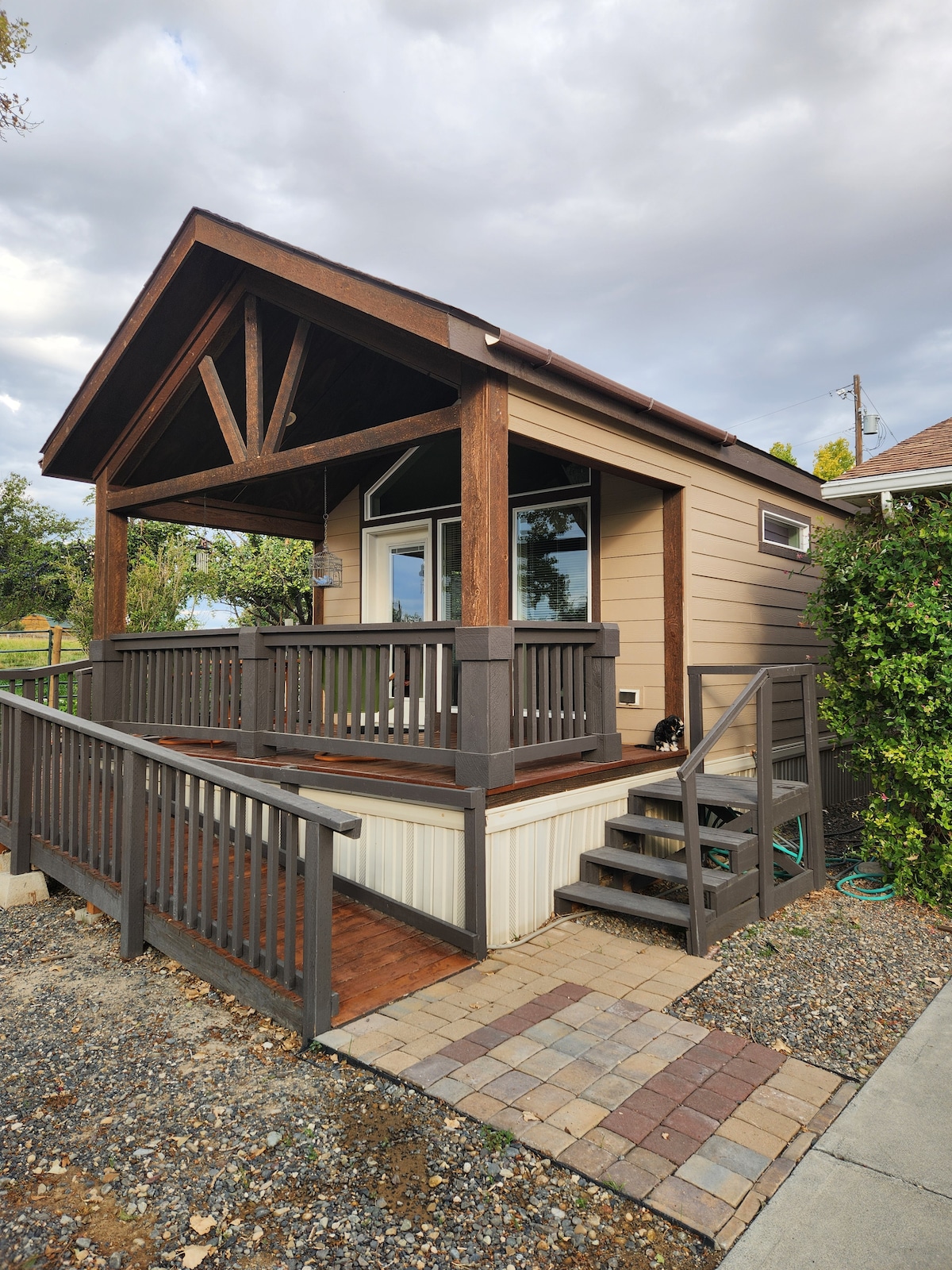 Our rustic shipping container guest house sits just outside of town on a 10 acre working Ranch. Enjoy a peaceful night, with the sounds of the creek and a few farm animals mixed in, including dogs that will visit your front door and keep guard on the property. Dogs may bark in the middle of the night! Our tiny and cozy guest house has custom and unique details throughout and is best suited for 1-2 people. This home is up a dirt road and there is parking directly in front of the tiny house.
