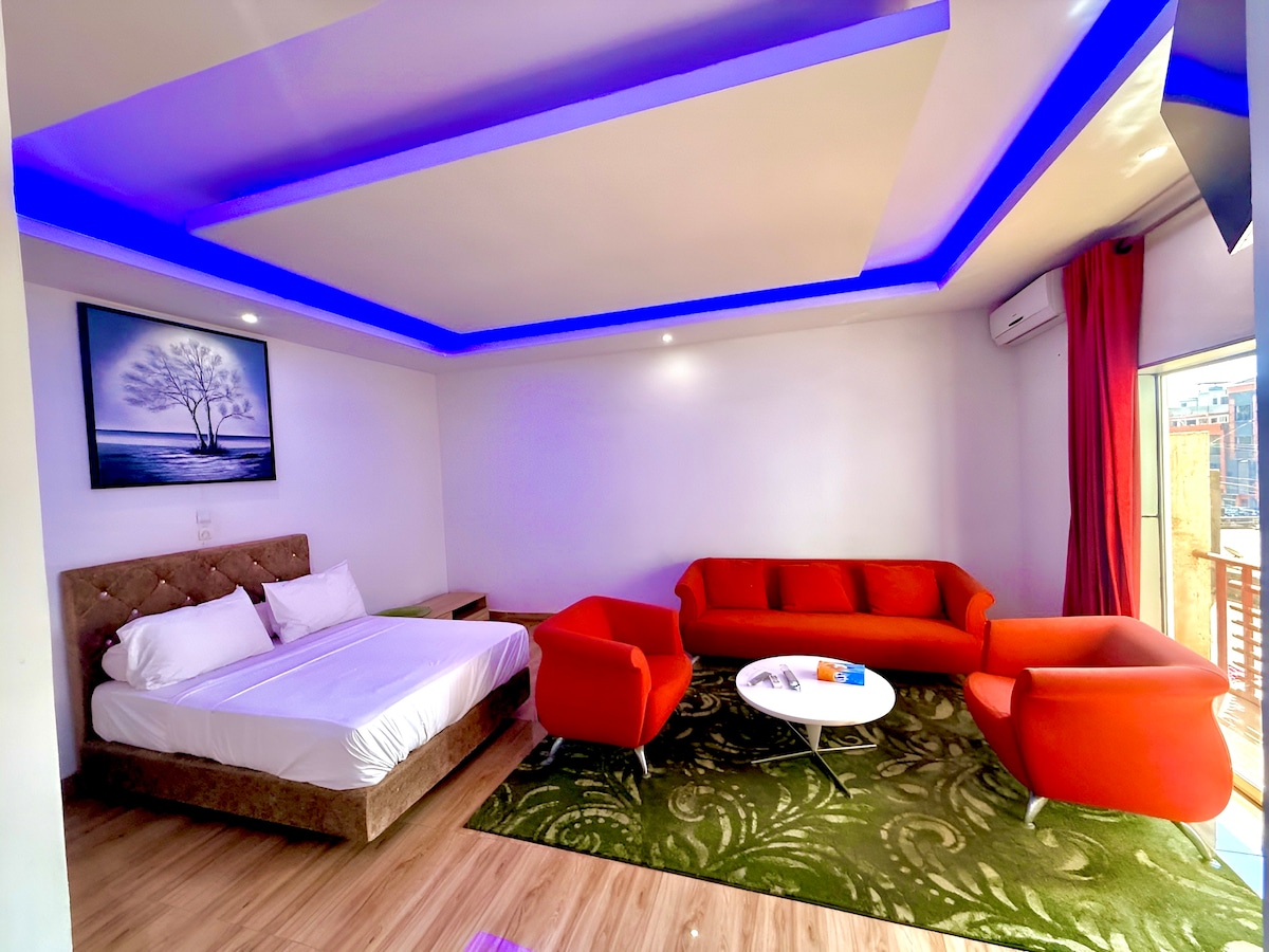 Appartement de luxe, décorations modernes et design situé à 10 mn du centre ville de Bamako. 80 m2 , 2 chambres climatisés & salles d’eau , 1 salon, 1 cuisine équipée. Tarif inclut électricité solaire pendant les coupures, eau, internet ( forfait suivant la durée du séjour), ménage et gardiennage. En dehors des coupures, Électricité EDM à la charge des clients (compteurs à charger suivant les besoins). *Électricité solaire prend tout sauf équipements lourds comme la Clim.