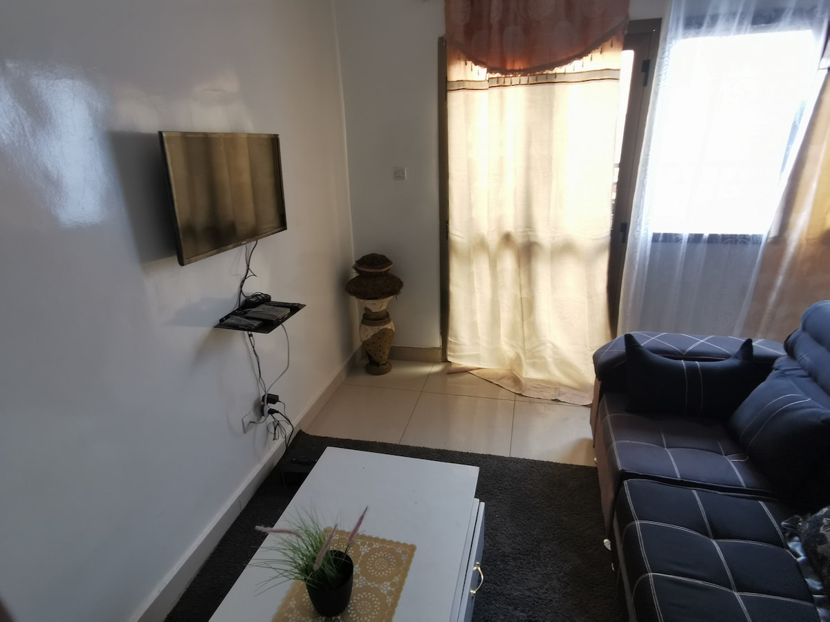 Détendez-vous dans ce logement calme et élégant, récemment rénové sur un ton blanc et noir et agrémenté de fleurs et de tableaux design L’appartement est idéalement situé à 1 km de l’ambassade des Etats-Unis, 50 m de la FEMAFOOT et 200 m du Ministère des Finances l’appartement dispose de panneaux solaires et d’une batterie Lithium de 15 kw/h pour relayer les délestages d’électricité. TOUTEFOIS, L’appartement se trouve au 3ème et dernier étage d’un immeuble sans ascenseur