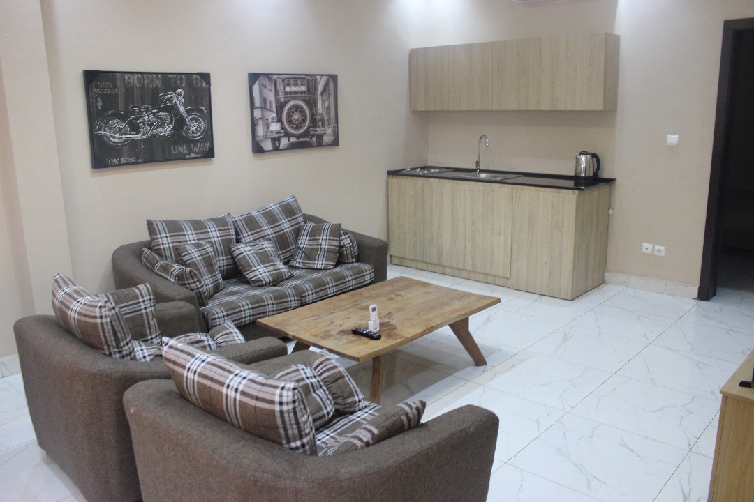 Ce magnifique appartement tout neuf sis proche de la Tour de l'Afrique à Bamako sera agrémenté vos séjours tant professionnels que personnels. Restez dans un immeuble paisible, accueillant, chaleureusement décoré avec goût, . Spacieux, élégant et unique, vous vous sentirez comme dans un rêve. Plus d'inquiétude en cas de coupure d'électricité, les panneaux solaires prennent le relais pour les luminaires, brasseurs, Internet, télé.
