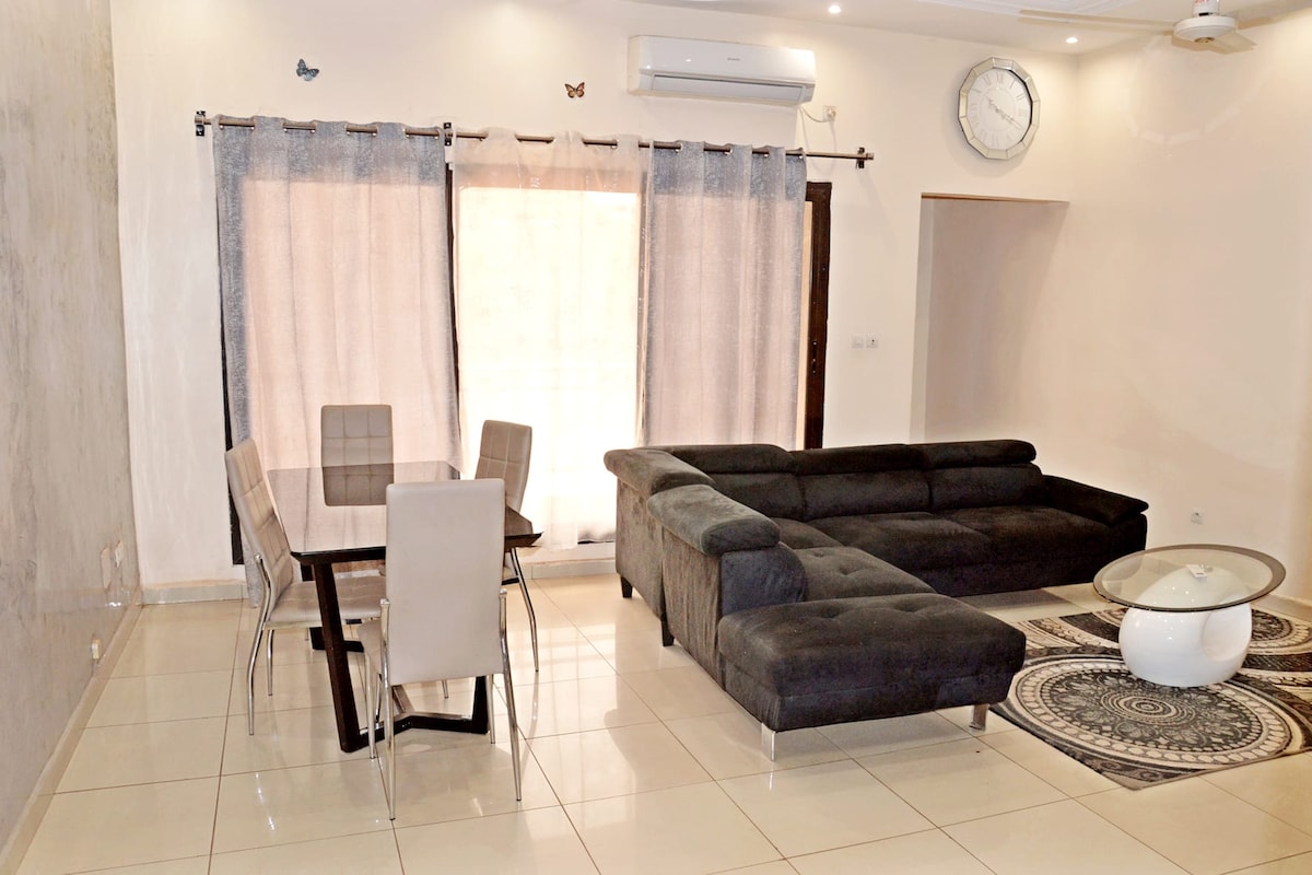 Profitez d'un logement élégant et central associant modernité et minimalisme en plein coeur du centre d'affaire de Bamako. Nous nous ferons un plaisir de vous recevoir dans un environnement propre, sécurisé et à deux pas de la majorité des points d'attractions de Bamako. Ne vous en faites pas pour les coupures! Nous assurons la continuité d'accès à l'électricité en permanence! Une connexion fibre optique haut débit est également disponible pour répondre à tous vos besoins.