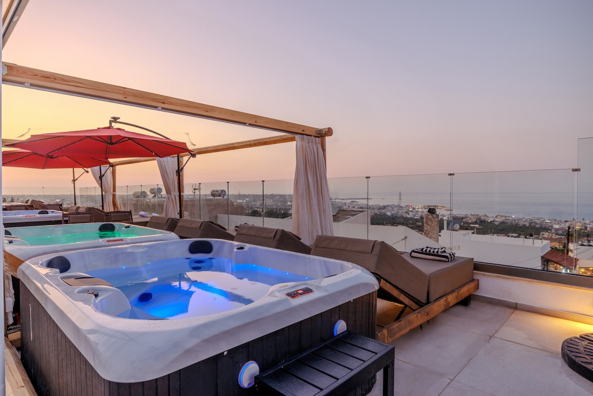 Welcome to Giagia’s Central Suite in the heart of Malia! This stylish retreat blends modern comfort with Greek hospitality. "Giagia" means grandma in Greek, symbolizing warmth and tradition. Enjoy smart features, a luxurious jacuzzi, and a spacious balcony with picturesque views. Accommodating up to 6 guests, it's perfect for families or friends. Step outside to explore Malia’s vibrant center, then return to relax in a space that feels like home. Book now for an unforgettable stay!