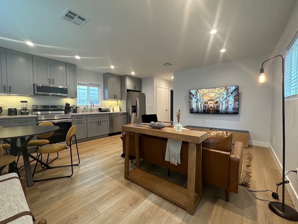 NEW! Scandinavian-Mod home 2 Bedroom, 2 Queen Size Memory Foam Beds, 10 minutes from LAX Airport, Sofi Stadium, Intuit & Kia Forum, Museums, Beaches, Wheelchair Accessible, Roll-in/Step Free entrance & Step Free Shower, 2 blocks away from main 405 Freeway, Full Kitchen with all the kitchen amenities to cook your own meal without having to leave, Entire Flat/Villa with full privacy & private entrance, 55” Flatscreen TV, Super quiet family neighborhood, great for families or a quiet place to work.