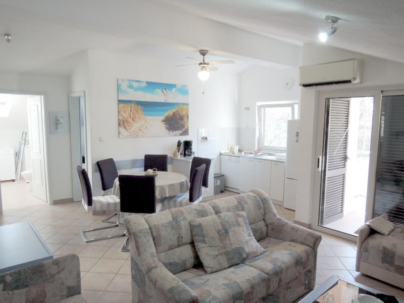 This nice apartment is situated on the first floor in an family house, distanced 750 meters from the canter Malinska and 10 min walk from the beach. The apartment has 55m2, it can accommodate 3-4 person and consists of 2 bedrooms, kitchen, bathroom with shower and balcony. TV-sat, air conditioning and grill in garden are on your disposal.