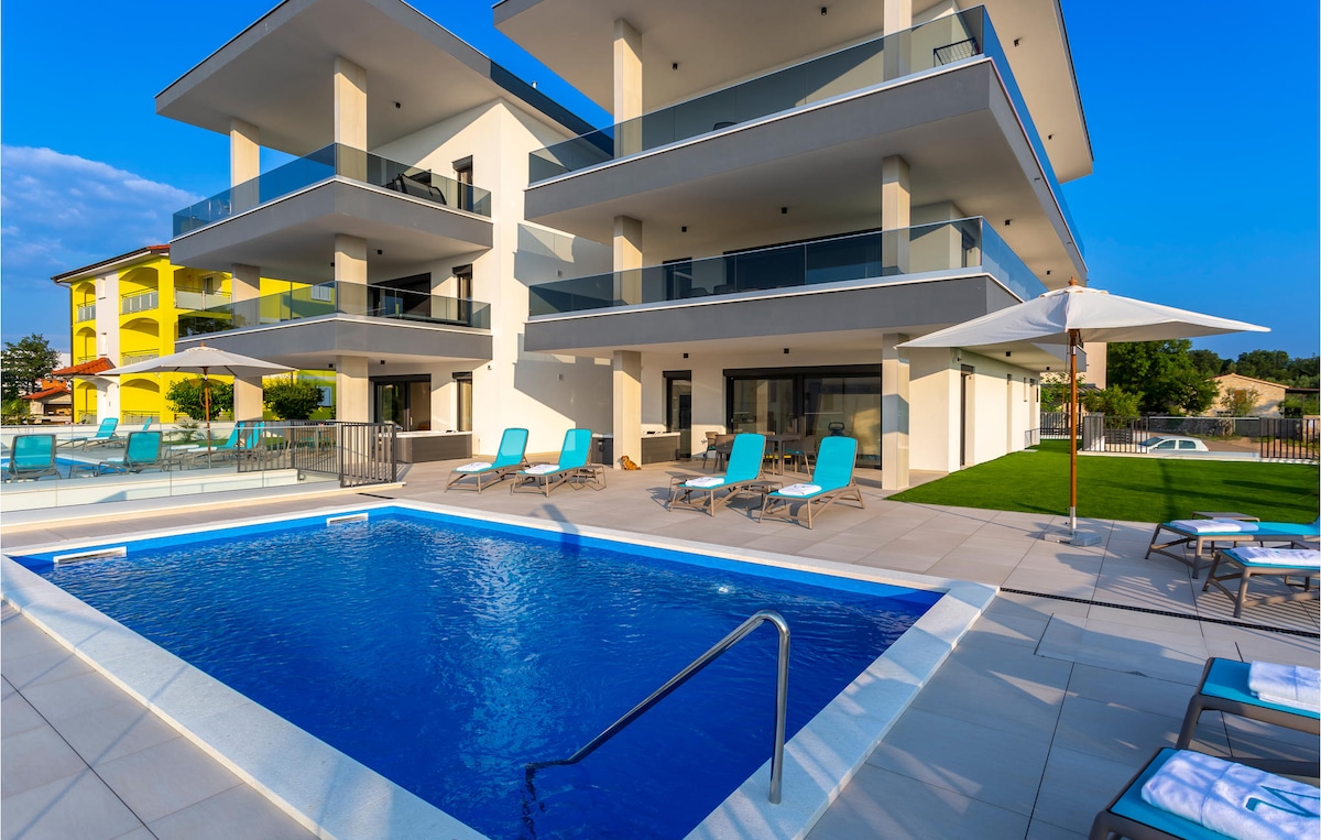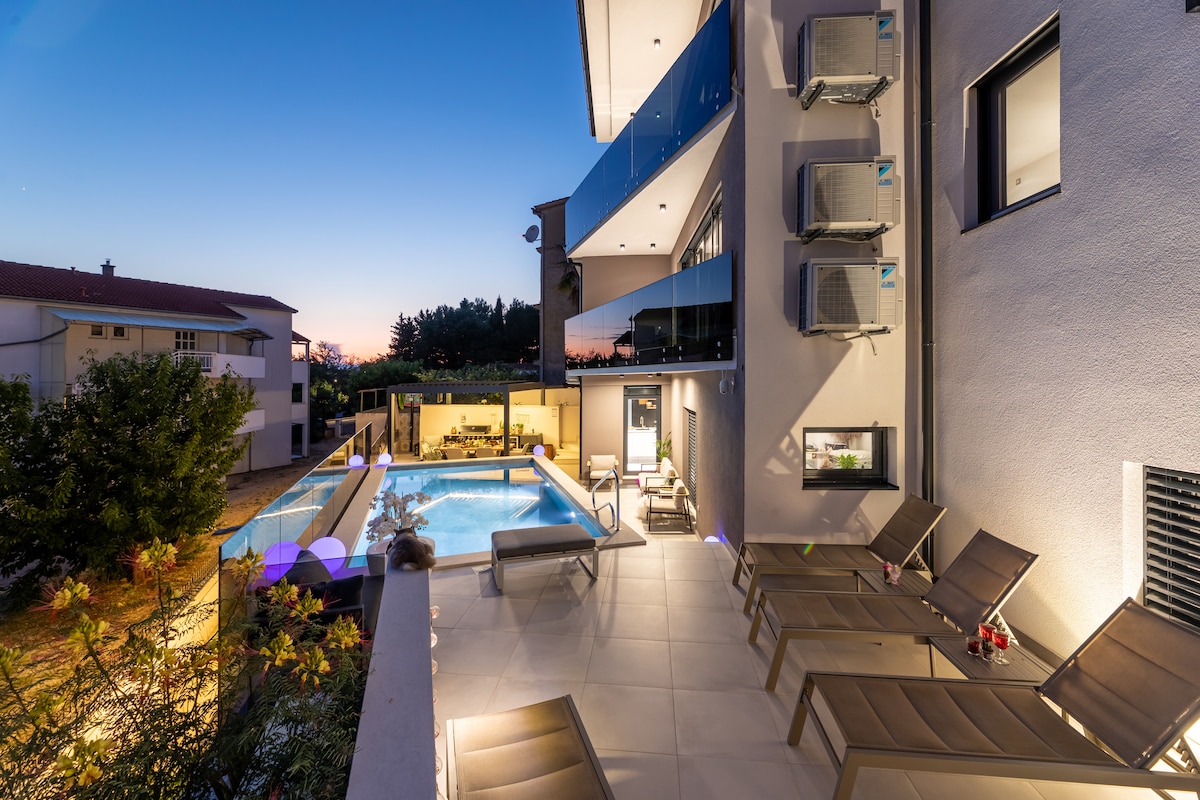 Beautiful Villa with excellent position on the top of the Island of Krk, extra site seen, perfect nature (near the forest) will make you happy. Villa is is brand new, equipped with finest furniture and brand new smart technology. Pool in front of the house, SPA and Sauna aside, covered with bio pergola system, from your porch you will reach pool massage less than meter from entrance to the house, nature is wild, peaceful position with extraordinary luxury.. Your place for perfect holiday :)