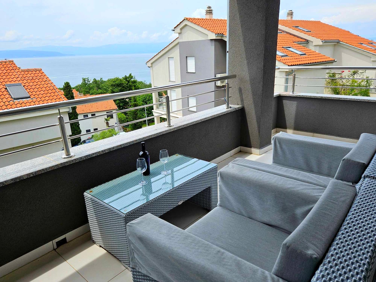 Luxurious penthouse in center of Malinska for up to 6 persons. This gorgeous apartment has three double bedrooms, two bathrooms and an additional toilette. The spacious living area has an access to the balcony which offers a nice view and has a private jacuzzi. The apartment is located only 80 m from the sea and a few hundred meters away from the town center of Malinska where you can find plenty of attractions and good restaurants. We wish you a warm welcome to our apartment CLAUDIA!
