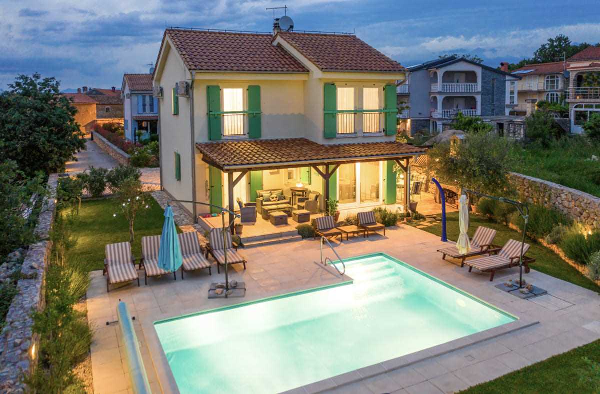 Modernly equipped villa for 10 persons with sauna, pool and jacuzzi. The villa has 4 bedrooms, kitchen, dining room and living room. Air conditioning, satellite TV, WiFi are included in the price. It is an ideal choice for your vacation on the island of Krk!