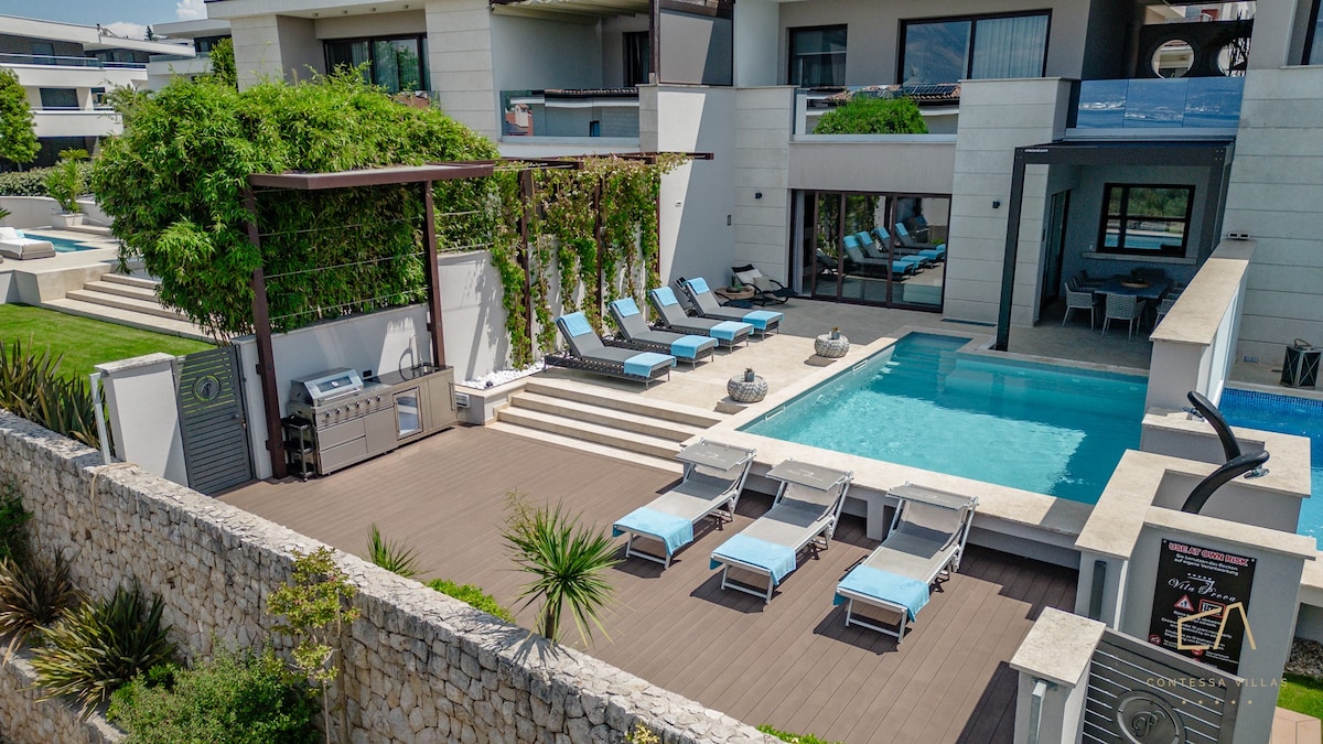 Luxury and modernly furnished Villa Lanterna is located in the peaceful and attractive town of Malinska on the island of Krk. The villa offers 380 m2 of living space and 755 m2 of outdoor area, providing top-level comfort for up to 10 guests, with an optimal capacity of 8. It is ideal for families and friends seeking privacy, luxury, and proximity to the sea.