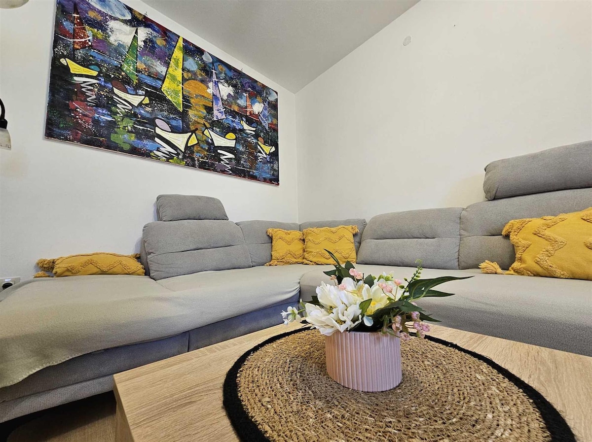 Apartment (35m2) is located on the first floor of a family house in a quiet location surrounded with big Mediterranean garden. The local beach is easily accessible on foot (10 min.walk)Within walking distance are several restaurants, promenade and little supermarket. A highlight is a terrace where you can enjoy view in greenery, see, sunset and chill after beach, sun with a glace of wine.