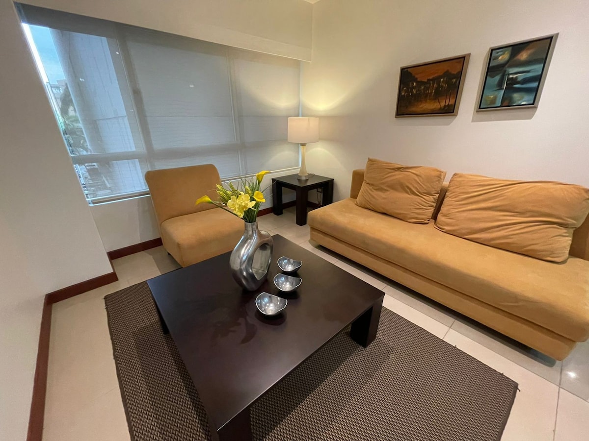 Suite amoblada, perfecta para 2 a 3 personas con excelente ubicación. Cuenta con todos los servicios para que se sientan en casa y puedan tener una linda experiencia. *Servicios: - Tv con Netflix y Youtube - Wifi de alta velocidad - Piscina - Gym *Ubicación: A lado del Omnihospital (Farmacia 24/7) Aeropuerto a 5 minutos en carro Frente al Mall del Sol Cerca del Centro de Convenciones. *Parqueo: - Público (Gratis fuera del edificio) - Privado ($8 a $10 por noche según disponibilidad)