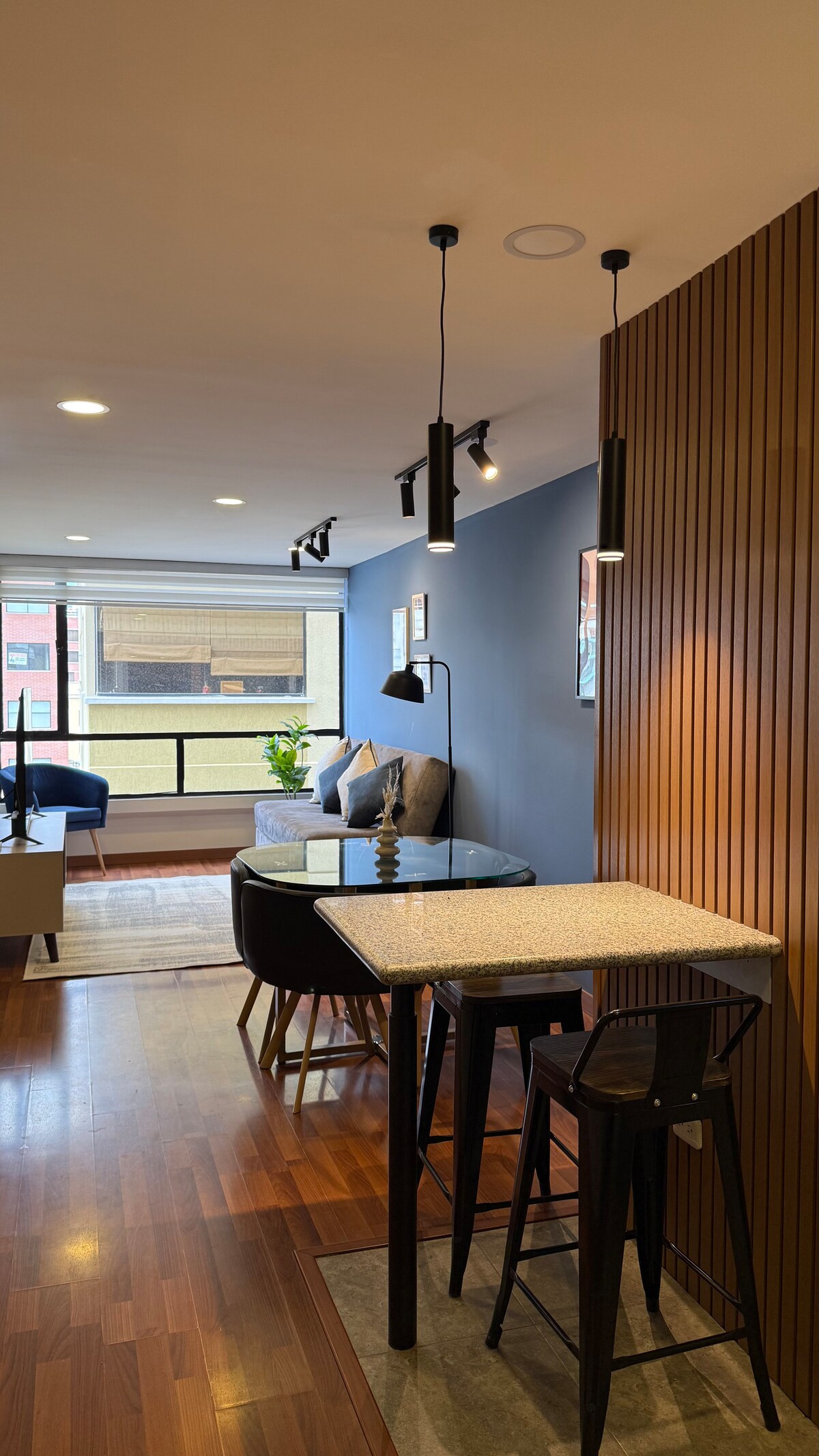 Enjoy a luxury experience at this central accommodation. Designed for an exclusive stay in the heart of Quito, Ecuador, this spacious and cozy place offers all the amenities needed to make you feel at home. Ideal for families and executives, this luxury building stands out for its prime location, just a 5-minute walk from restaurants, cafes, pharmacies, supermarkets, and shopping centers, near La Carolina Park. Welcome to Bleisure Hosting!