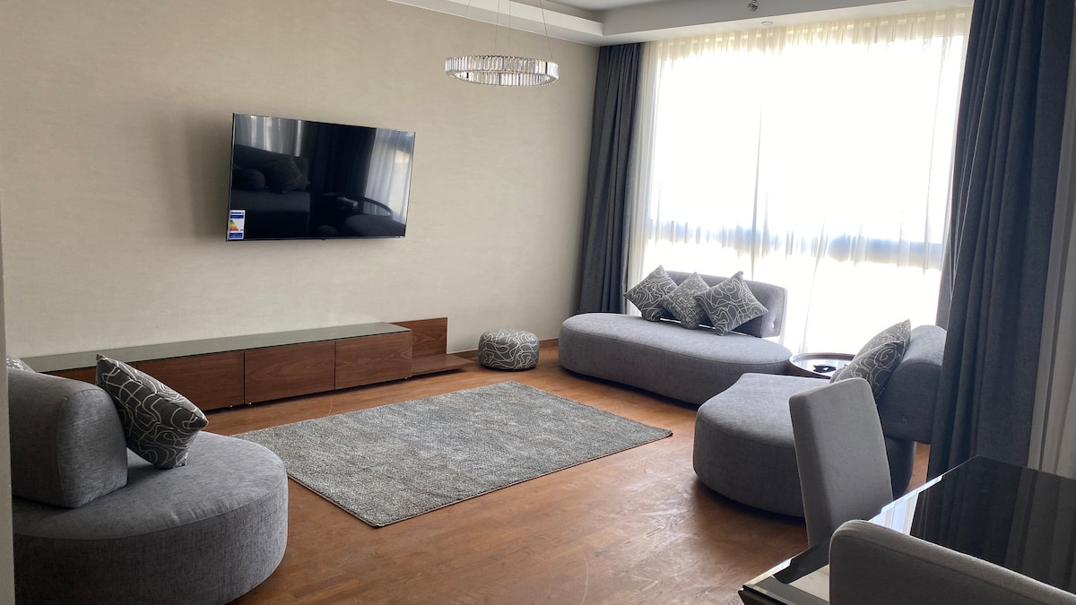 Enjoy this luxurious 2 bedrooms unit with 3 baths. The unit has a big smart TV, washer/dryer, and fully equipped kitchen. Central air-conditioned with heating option. Located in the luxurious gated community in Aeon Towers by Marakez. Near numerous hot spots in the upscale area of Shiekh Zayed. It is 2 min away from Mall of Arabia, and is in close distance to other areas like, Smart City, Media Production City, Mall of Egypt, and many other shopping areas and restaurants.