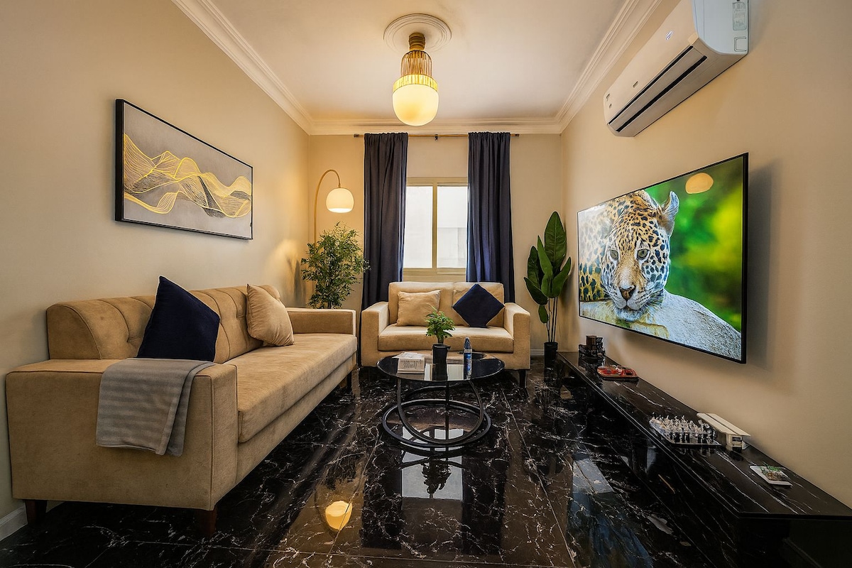新1卧室套房,配备75英寸4K电视,位于奥拉亚阿尔霍巴尔
