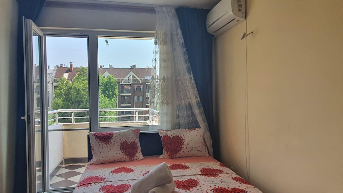 Welcome to my beautiful and cosy studio in the vicinity of the well-known Pirotska str. and the old center! The metro line 1 station is 5 minutes away, which connects you directly to the airport. Not far from the building you will find a shopping center, supermarket, and places to eat. The building is new, with easy access and a high degree of security, has video surveillance and a comfortable elevator. The terrace offers a nice view to the lovely green park. High-speed internet is provided.