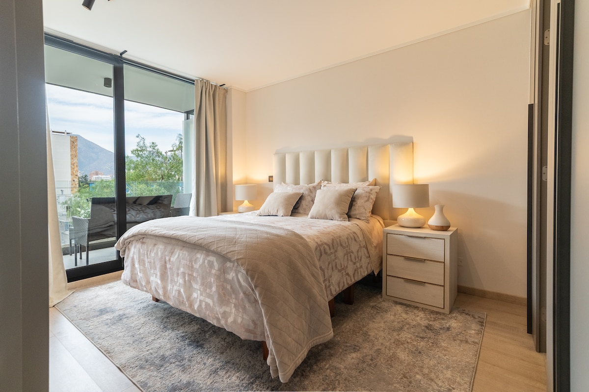 Wake up in the exclusive El Golf district. Spacious, bright, and fully equipped apartments. Featuring three bedrooms (master en-suite), an open-plan living and dining area, a fully equipped kitchen, and a separate lounge ideal for a home office. Enjoy fully autonomous access, high-speed WiFi, and impeccable cleaning standards. Located just steps from the Metro, and surrounded by top restaurants, cafés, parks, and everything you need to move around Santiago with ease.