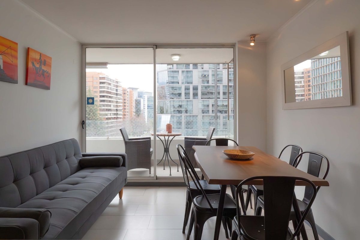 Beautiful and comfortable studio apartment steps away from Parque Arauco and Clínica Alemana. Enjoy a cozy and comfortable stay in Las Condes. Our Hosts are 1 click away! -Surrounded by cafes, restaurants and luxury shops -Comfortable King bed and 2-seater sofa bed -Kitchen fully equiped -High speed internet -Outdoor and indoor heated pool -Gym -Security and controlled access Ideal for: Business or pleasure People looking for a safe and quiet location