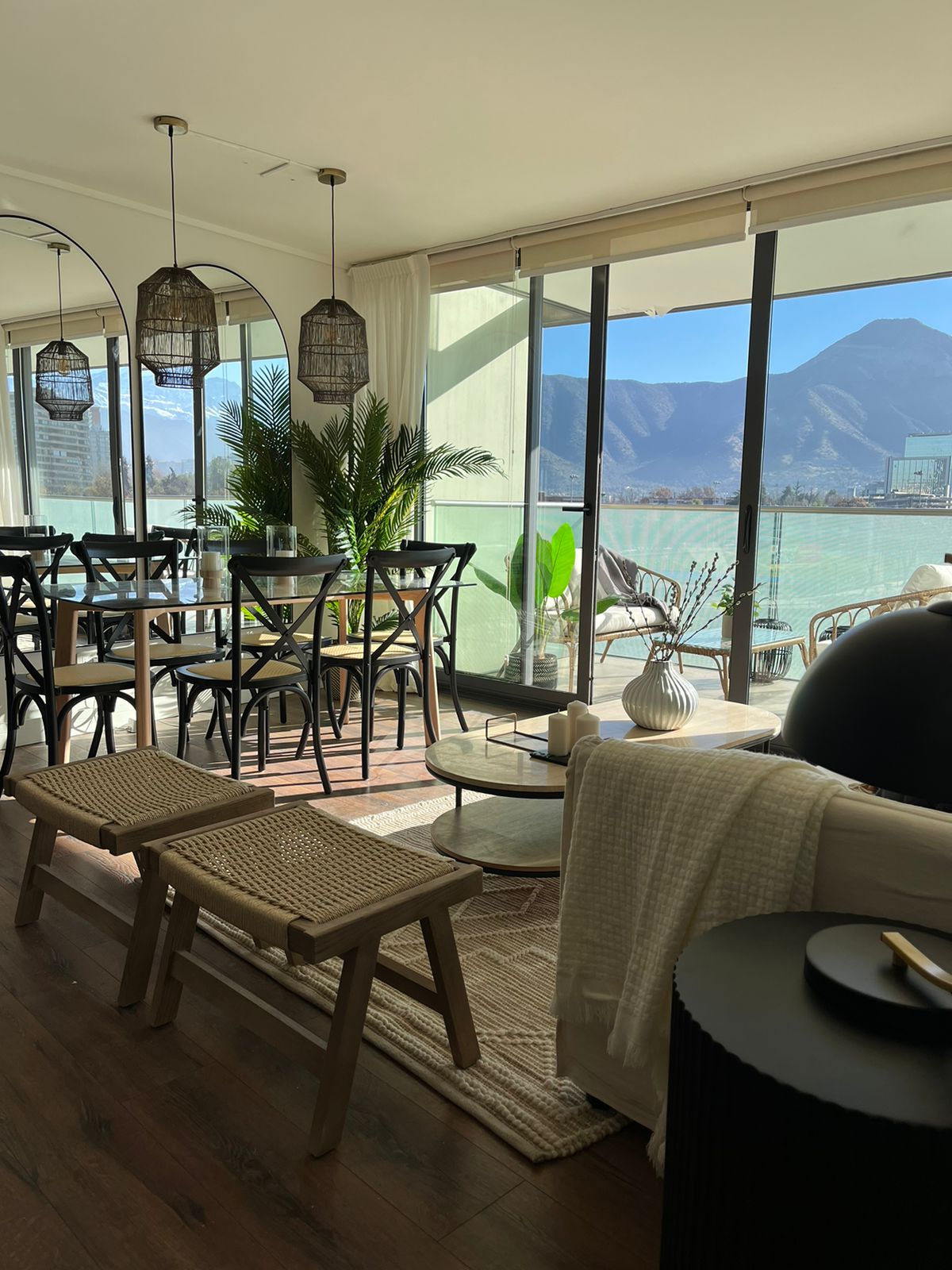 Departamento de Alto Standard ubicado en excelente sector de Santiago, a pasos del Parque Arauco, restaurantes y centros comerciales, y próximo a clínicas, zonas de interés turístico y agencias de ski. Vivirán como locales, con impresionantes vistas a la Cordillera de Los Andes y todas las comodidades para hacer que su estadía sea inolvidable. El departamento está pensado como un refugio elegante e inspirador. Se sentirán como en casa y disfrutarán de un espacio acogedor y relajante.