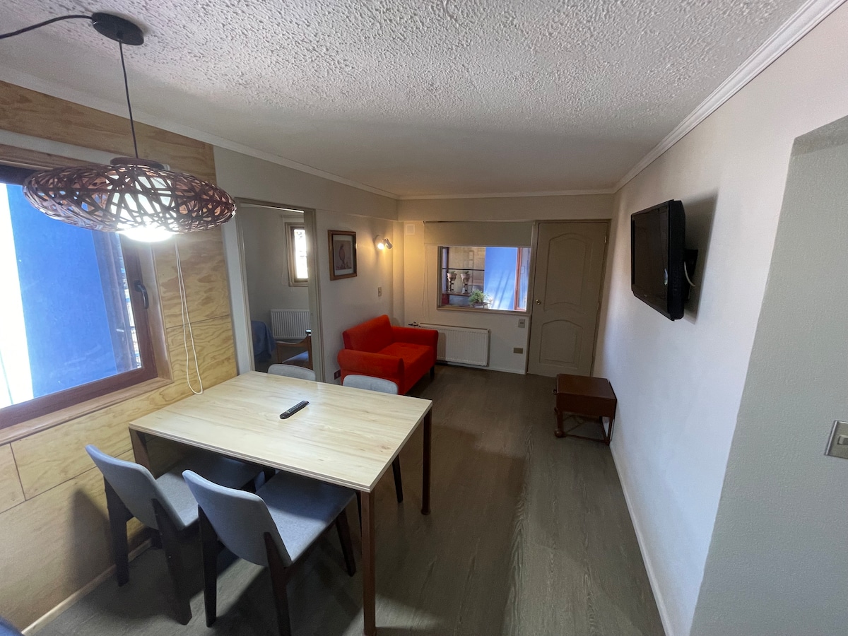 A solo 1 cuadra de locomoción, terminal de buses tur bus, estadio, supermercado único y tottus, plaza y parque Vergara, 6 minutos caminando al centro, estacionamiento, WiFi, chimenea, hospital nuevo a 5 minutos caminando, a 2 cuadras de avenida principal.