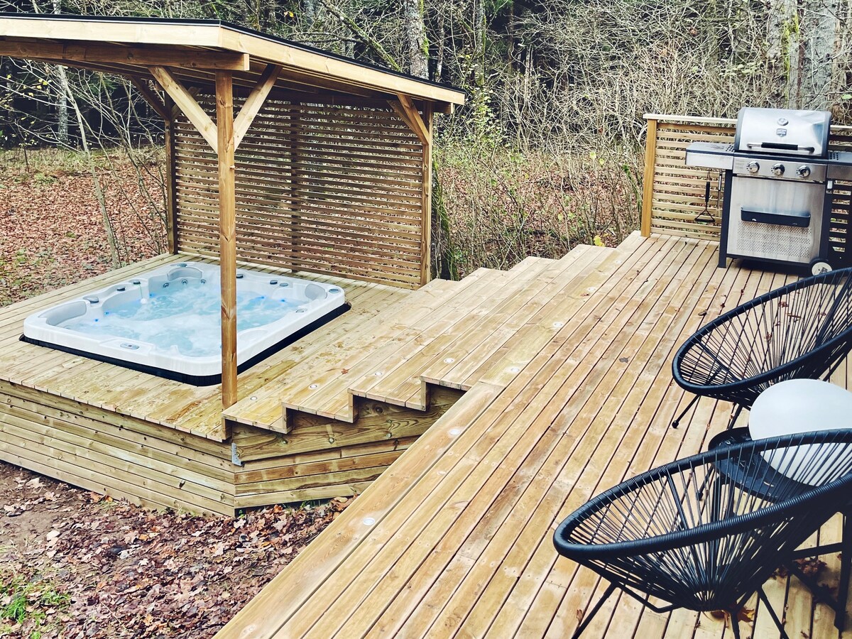 Take it easy at this unique and tranquil getaway. Featuring a fire pit, jacuzzi and sauna, brings use of the 40m2 patio and allows for you to enjoy the outdoor atmosphere! Surrounded by tall trees this Modern yet Simple Cabin was thoughtfully designed to bring you a luxurious getaway in Mother Nature with a forest landscape right at your fingertips. The perfect amount of seclusion without being too far removed. Enjoy all the amenities you need to relax and recuperate.