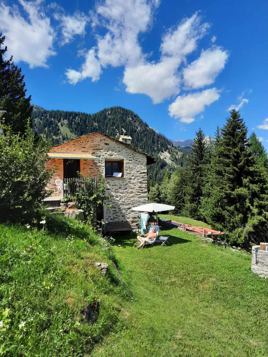 Immergiti nella natura incontaminata in una baita situata in una zona tranquilla e silenziosa, perfetta per famiglie, escursionisti, biker e appassionati di avventure all'aria aperta. La nostra baita offre un rifugio semplice e accogliente, ideale per chi desidera staccare dalla frenesia quotidiana. La baita è dotata di una cucina ben attrezzata con un forno a legna, camere confortevoli, bagno e doccia semplici, una veranda accogliente. Facilmente raggiungibile a piedi (15min.) con parcheggio.