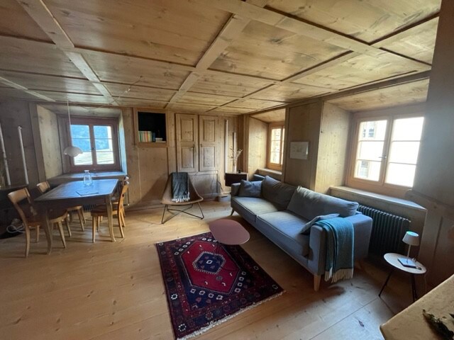 Lehne dich zurück und entspanne dich – in dieser ruhigen, stilvollen Unterkunft mit riesiger Sonnenterrasse und fantastischer Aussicht mitten in den schönen Bündner Bergen. Diese Neubauwohnung auf der Basis eines Hauses aus dem Jahr 1366 steht per sofort zur Vermietung bereit.