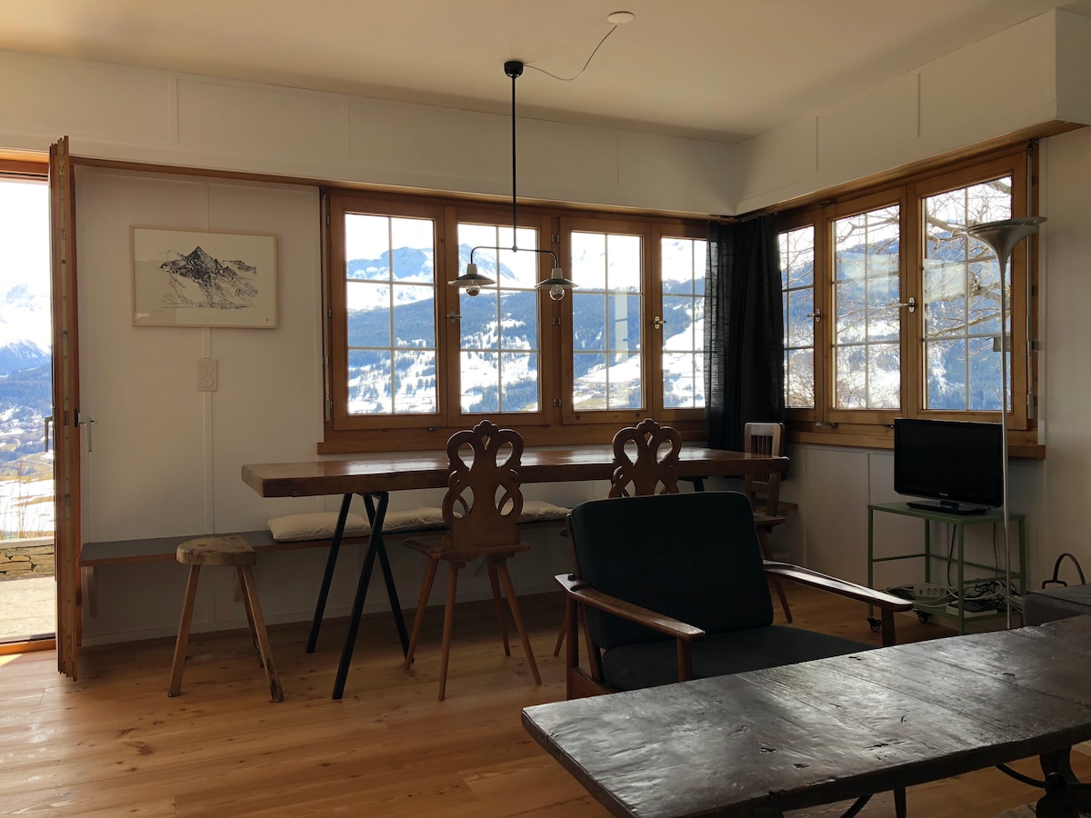 A light and cosy studio in a peaceful small apartment building located centrally in Maloja village featuring all the delights of the Swiss Alps. St. Moritz's ski areas are 10 minutes drive , the local ski lift is walking distance, cross country tracks are on the doorstep and Maloja Lake is just across the fields. Summer hiking and biking trails are in the immediate vicinity. Renovated this year to a very high standard with a new kitchen and modern furnishing, the apartment offers all comforts.