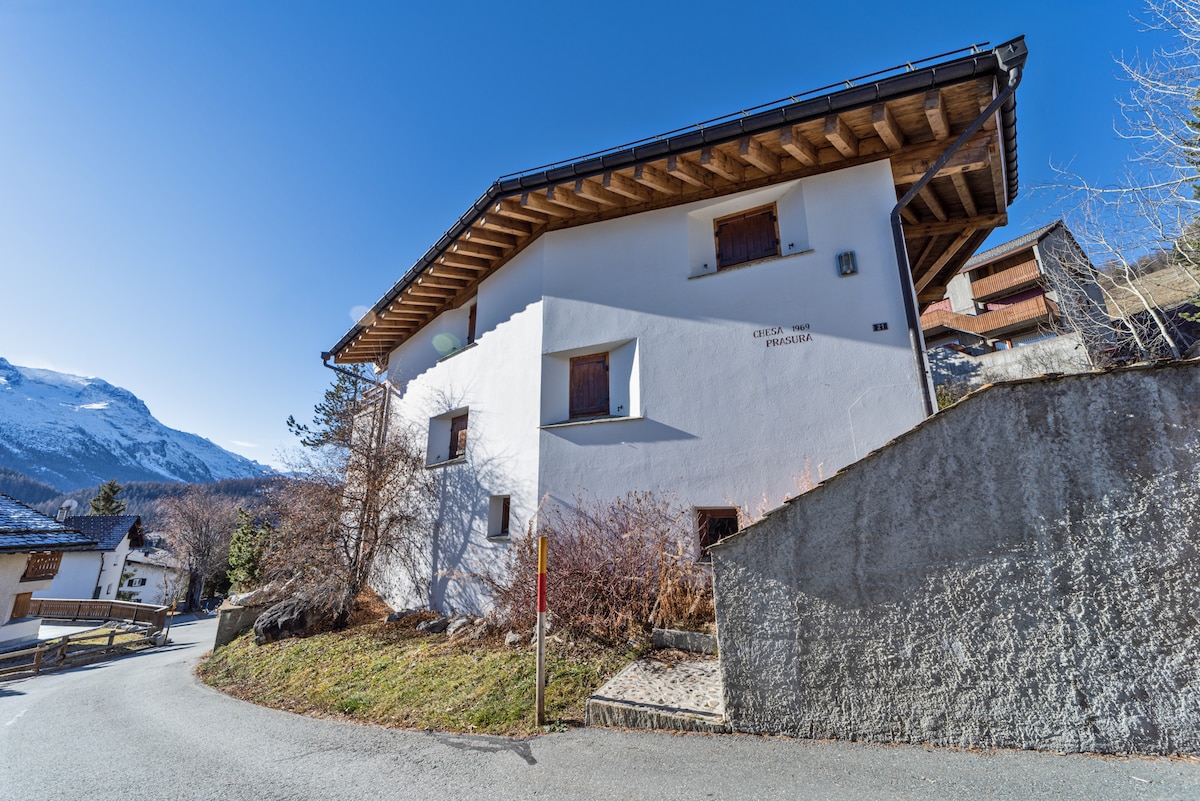 Accogliente appartamento bilocale in stile engadinese x 4 ospiti. Composta da un soggiorno con tavolo allungabile e divano letto matrimoniale, una camera da letto matrimoniale, bagno con vasca, cucina separata con tavolo x 4 persone , armadi . Magnifica vista panoramica. Posto auto all'aperto x 1 auto. Spazio condiviso per le biciclette. A pochi metri dalla fermata dell'autobus. A poca distanza dalle piste di sci di fondo raggiungibili a piedi. Da Gennaio 2024 high speed wifi connection free.