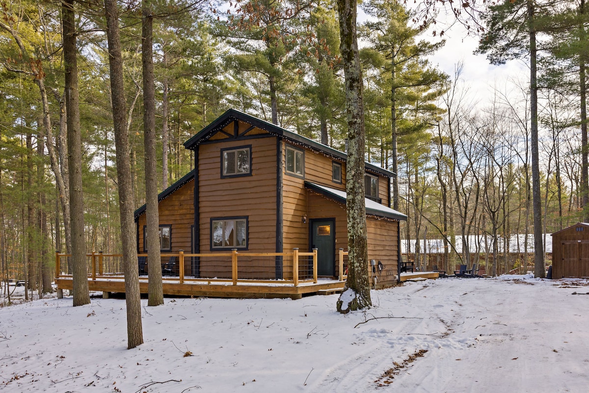 Welcome to the Black Pine Lodge! Nestled in the heart of the Adirondacks, this modern A-Frame 3 bed/3 bath cabin can accommodate up to 8 guests. Amenities: Hot Tub Panoramic Barrel Sauna Pool Table Helix mattresses Fire Pit Kayaks Surrounded by beautiful trees this place feels tranquil and has lots of hiking trails outside the front door. Explore other hikes, rivers & dining in neighboring Wilmington, Keene and Lake Placid. End the day relaxing at this lodge that caters to all.
