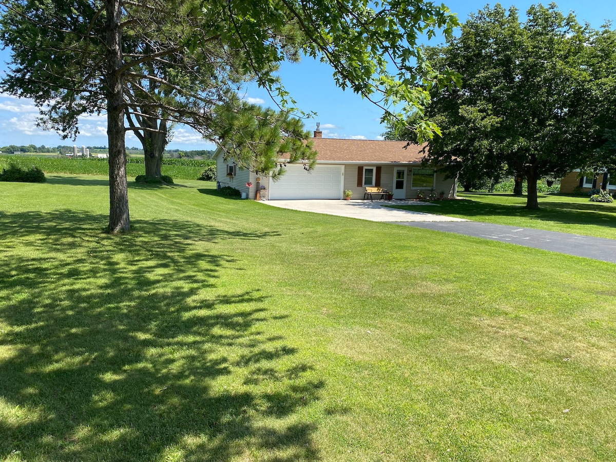 Welcome to Stay at Sunrise LLC. We offer a clean and comfortable home for your vacation enjoyment. We are in a rural area, recreation trail head is 3 miles east of us as is the Wade House, 7 miles from Road America. Large yard, Fire pit, picnic table, child swing set. Garage parking on site if arranged in advance. We do not have WIFI Phone reception for Internet is good. No Cable or Satellite TV, Over 32 antenna channels. Smoking is allowed outside of the home. No pets allowed.