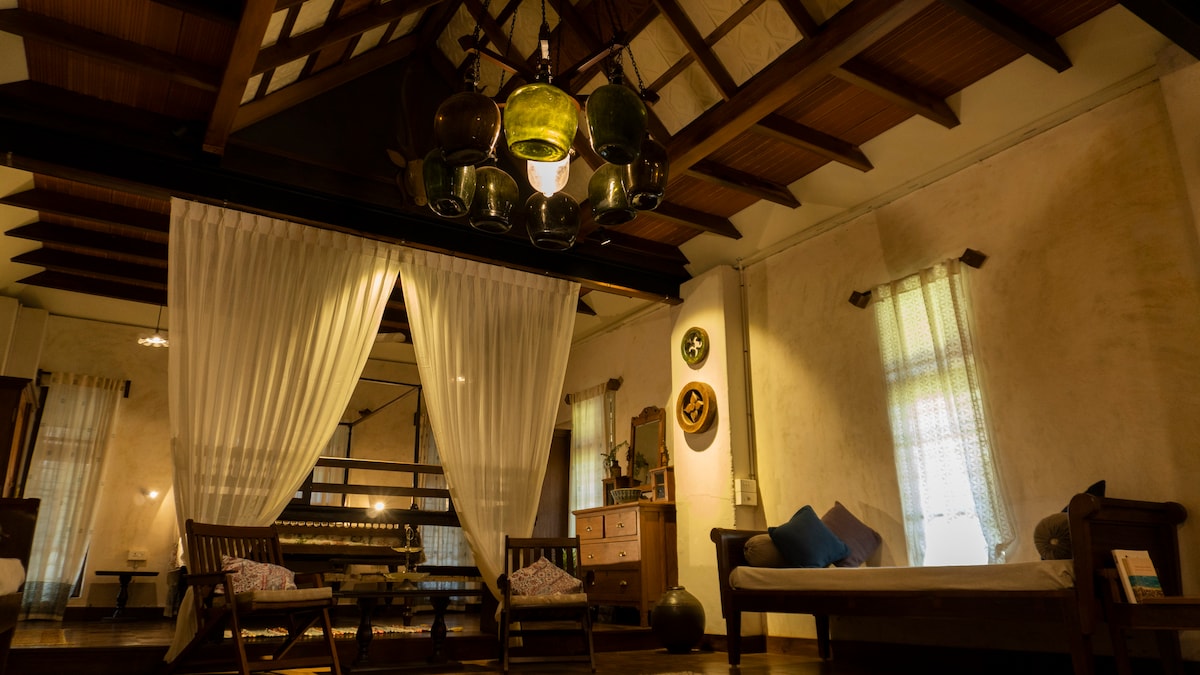 Close to one acre property surrounded with lush green plantations of coconut, areca, fruits and flowers and chirping birds to enjoy living experience with nature. Being with nature is the best way to understand Gods creation. Discover yourself, re-build relations, enjoy the calmness & peace or just write a book using the hammock to visualize. Enjoy the machan for BBQ. Upto 10 people can be easily accommodated in 3 bedrooms and huge sit-out. Only 1 group at a time. Complimentary breakfast.