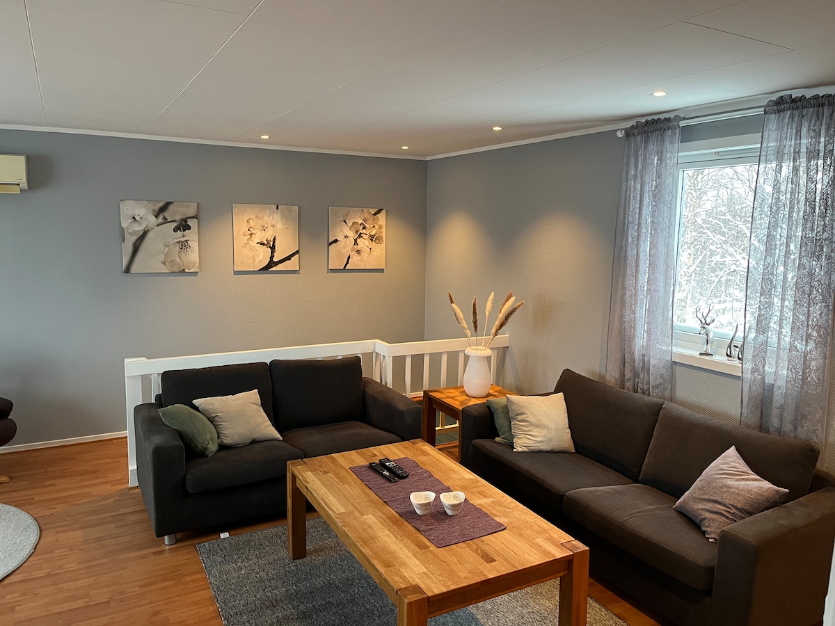 After being a host in Oslo since 2011, I have renovated this cabin far up north where I was born, and my family still live. It also comes equipt with everything you might need or didn't know you needed to make your stay epic! 2 pairs of snowshoes include! 2 bikes, 2 fishing rods and fancy coffee gear is also free for you to use. The location is in the middle of the local village, and the view and space are spectacular. Enjoy the midnight sun and northern lights in this modern cabin.
