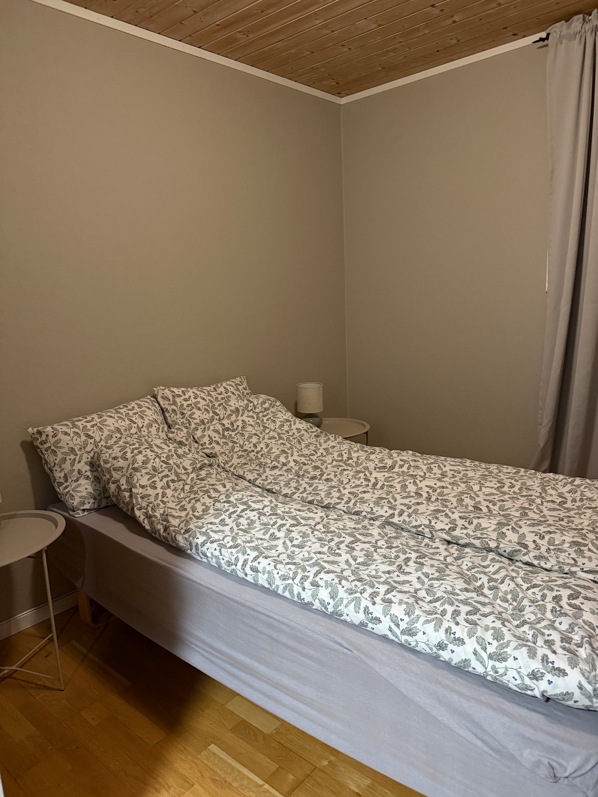 Romslig leilighet i rolig boligområde. Gangavstand (2km) til Storsteinnes sentrum. Ca 3.7 km til idrettsanlegg. Veldig flott natur i området. Perfekt for opplevelser i skog og fjell. Passer for 3 voksne. Ene soverommet har 2 x 90 cm seng som kan stå separat eventuelt settes sammen til 180 cm dobbelseng. Det andre soverommet har 120 cm seng.