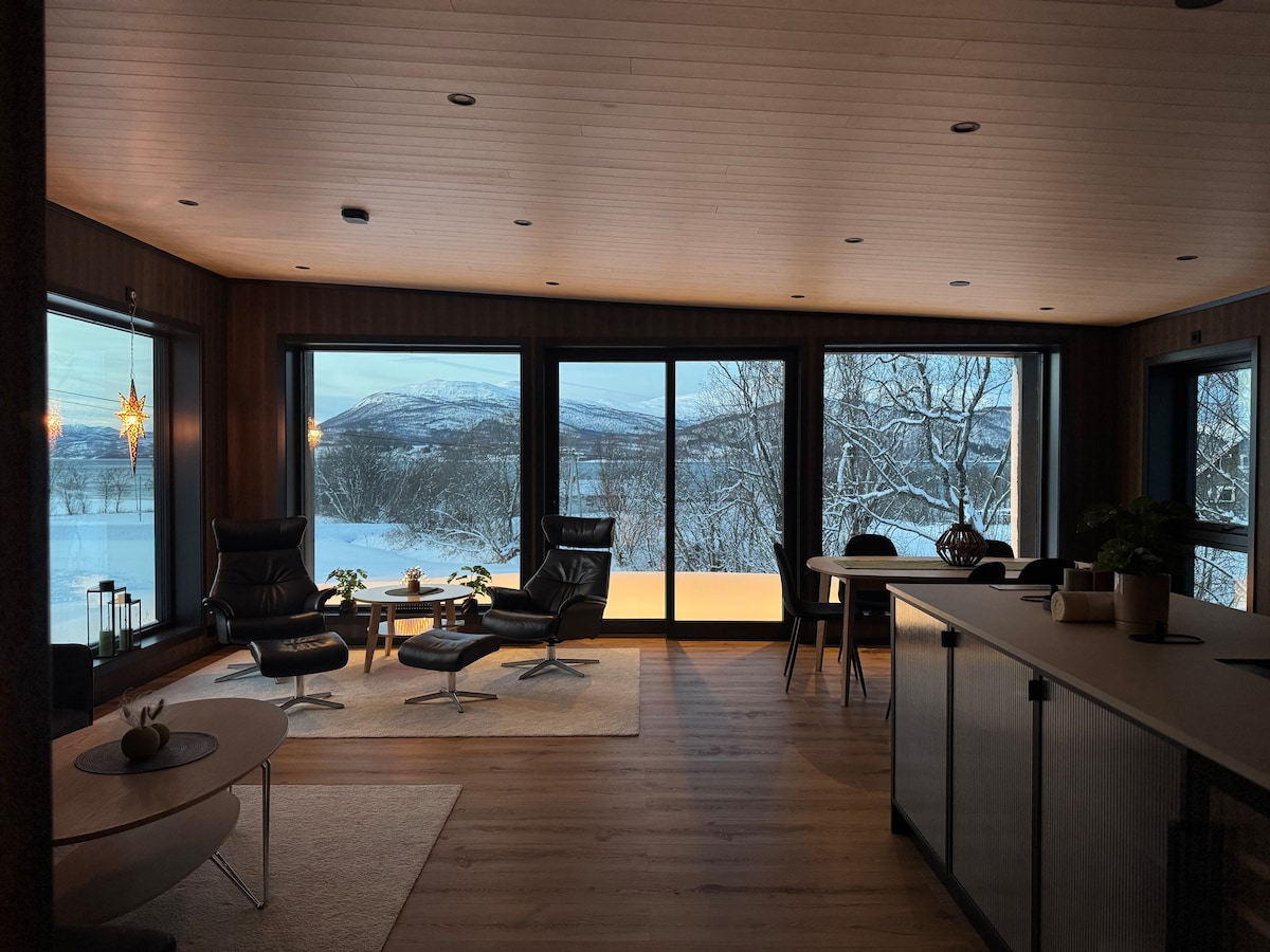 A small hour drive from Tromsø, or a bus ride directly from Tromsø Prostneset to your new doorstep! Skiing, hiking, fishing and northern lights. Slapp av ved hav, fjell og nordlys. Her har du plass til hele familien i en leilighet med flere fantastiske turmål gjennom alle årstidene. Her kan du finne roen mens du utforsker nærområdene til fots, ski eller med båt. 30 minutters kjøretur til Lyngseidet og Tamokdalen. 1 time og 15 min til Tromsø med bil, og tilsvarende til Kilpisjärvi.