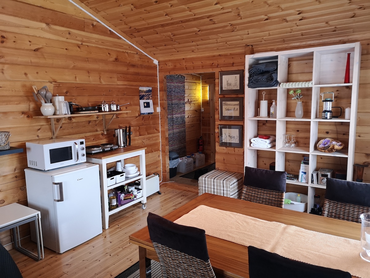This place is like a fairytale. Imagine waking up surrounded by mountains. Imagine walking out of the door and you are just a few steps away from a fresh lake. Imagine sitting out in nature listening to birds and silence. In the summer you can fish on the lake and drive out with the boat. In the winter you can go skiing, icefish, ice bath, relax in the sauna and the jacuzzi! Boat, jacuzzi and sauna are all included in the price and you will never get any surprise-fees.