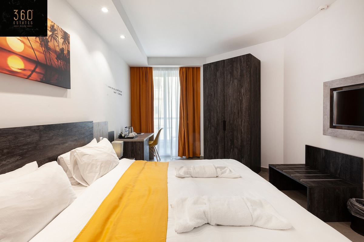 MYT IV is one of our double room which is situated on the second floor of our townhouse. The room combines a quaint décor with all the modern amenities such as Internet, flat screen TV and a mini fridge. This double room bathroom facilities' are spread along the back wall with modernly-designed separate areas for shower, WC and dressing area. Just minutes walk from all the major hot spots of the village.